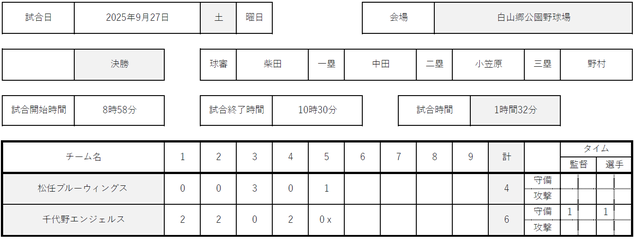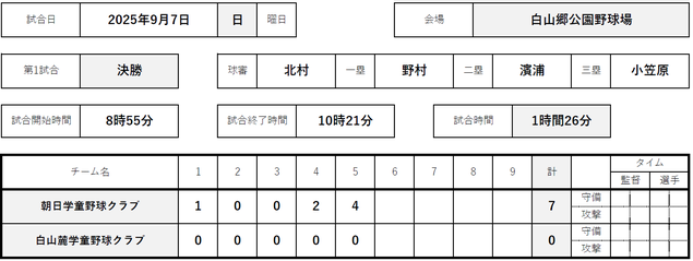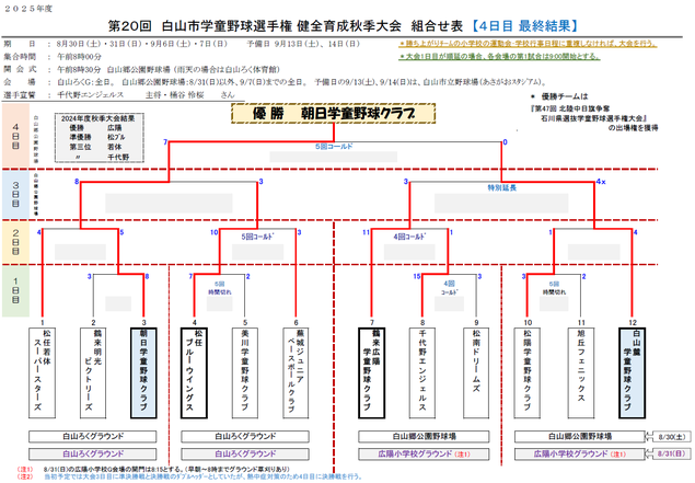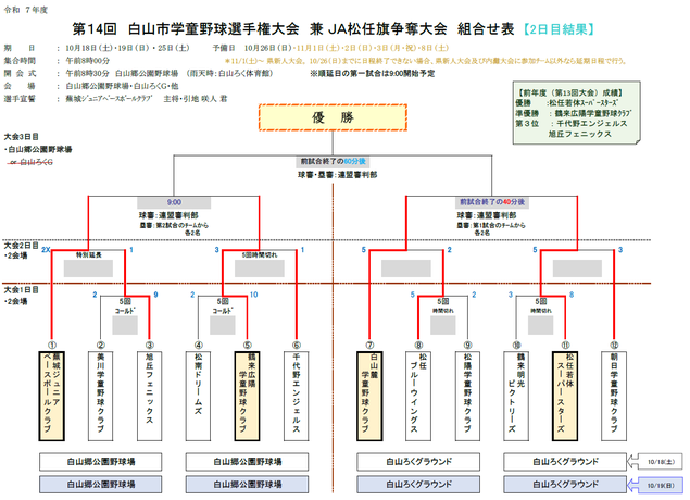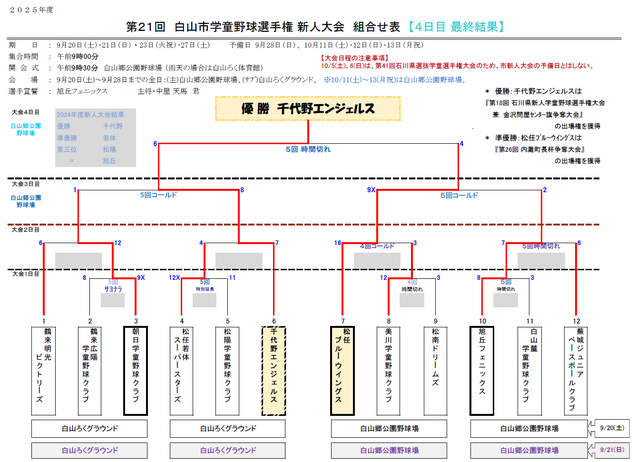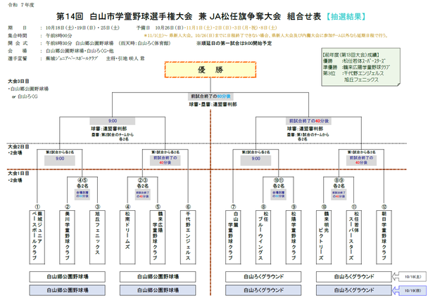 ・白山市学童野球フレッシュジュニア大会 大会要綱